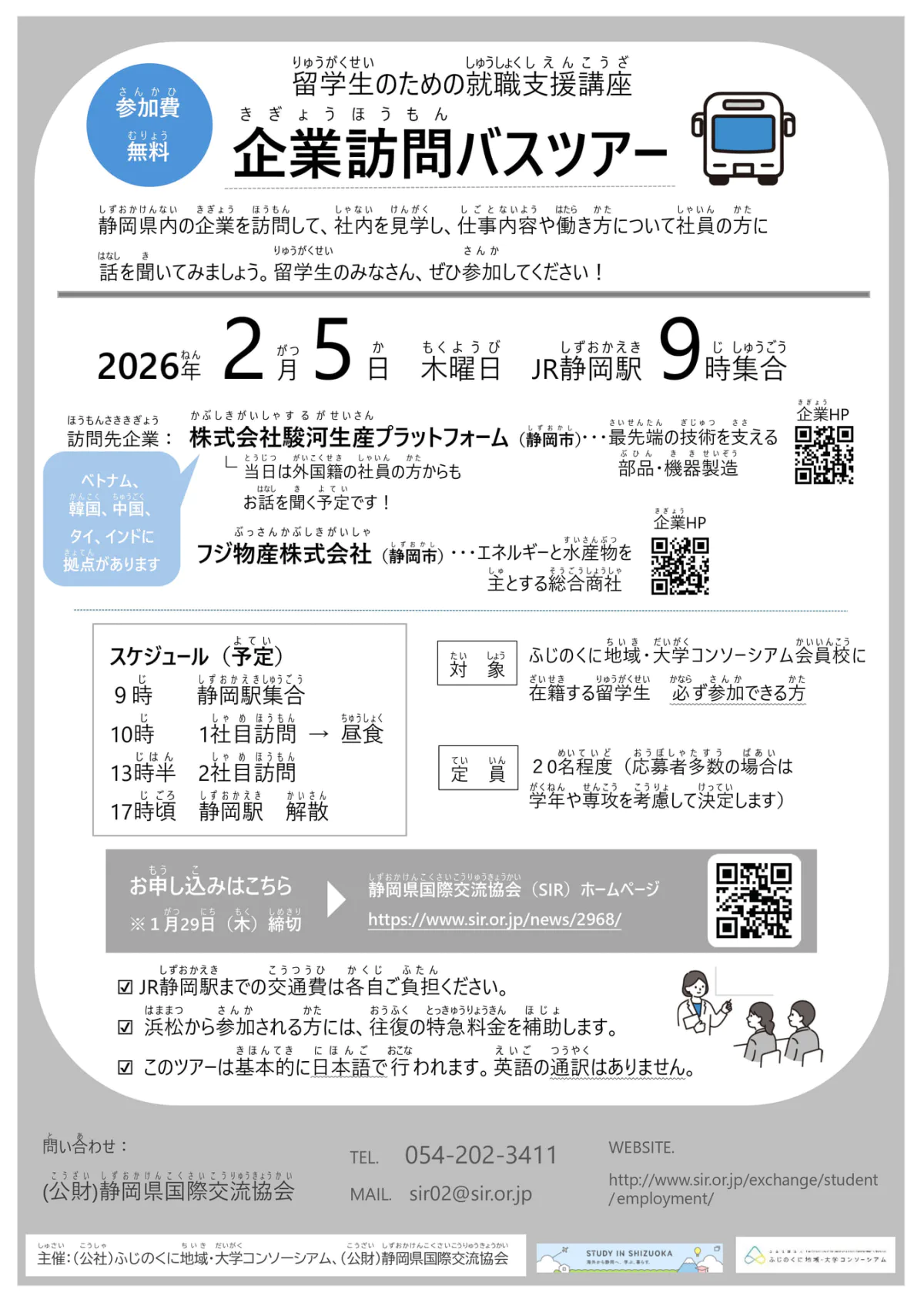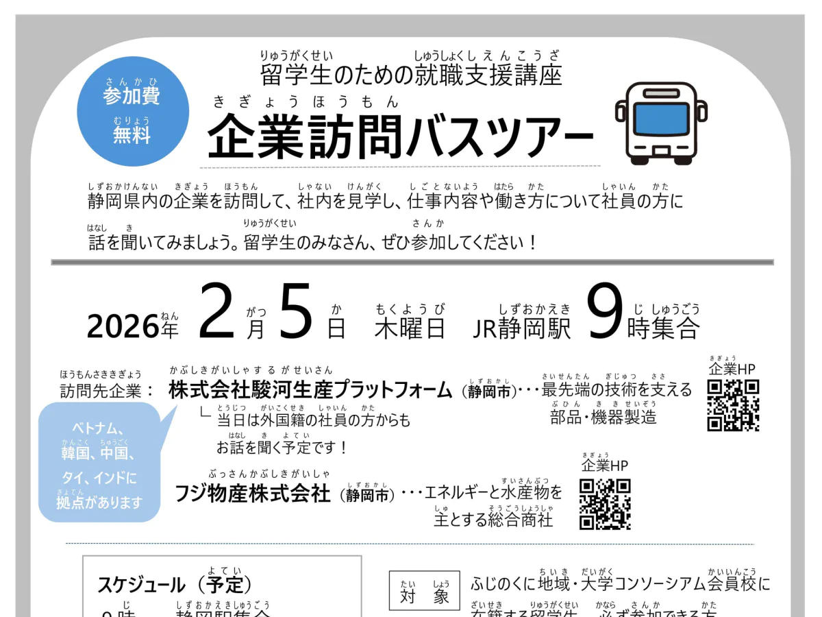 2026年2月 留学生のための就職支援講座 企業訪問バスツアーのお知らせ